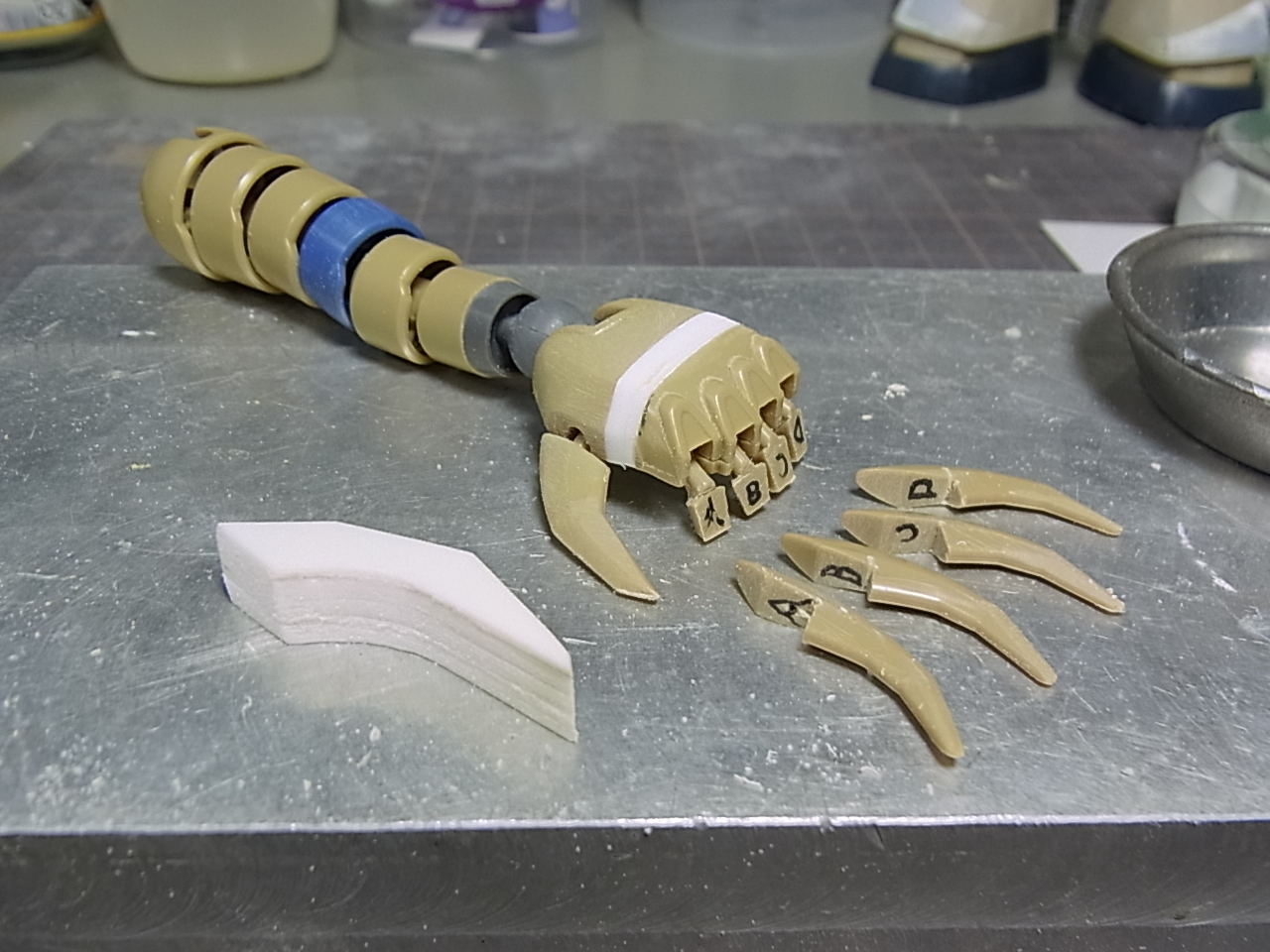 爪0.3ミリプラ板を両面テープで貼り付けながら