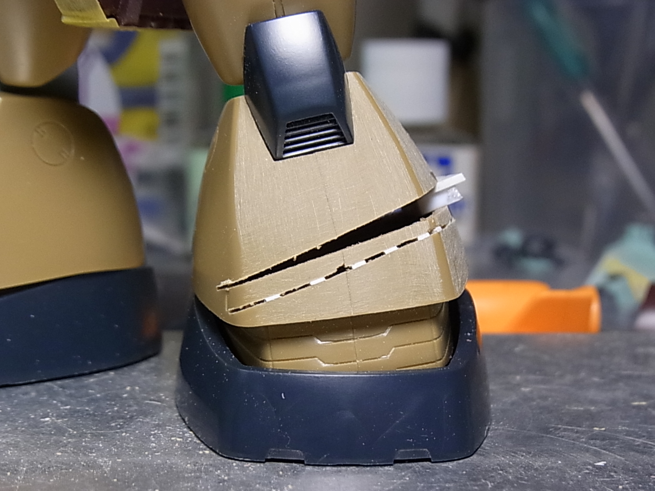 ナナメにカットしてプラ板3mmを無理矢理IN