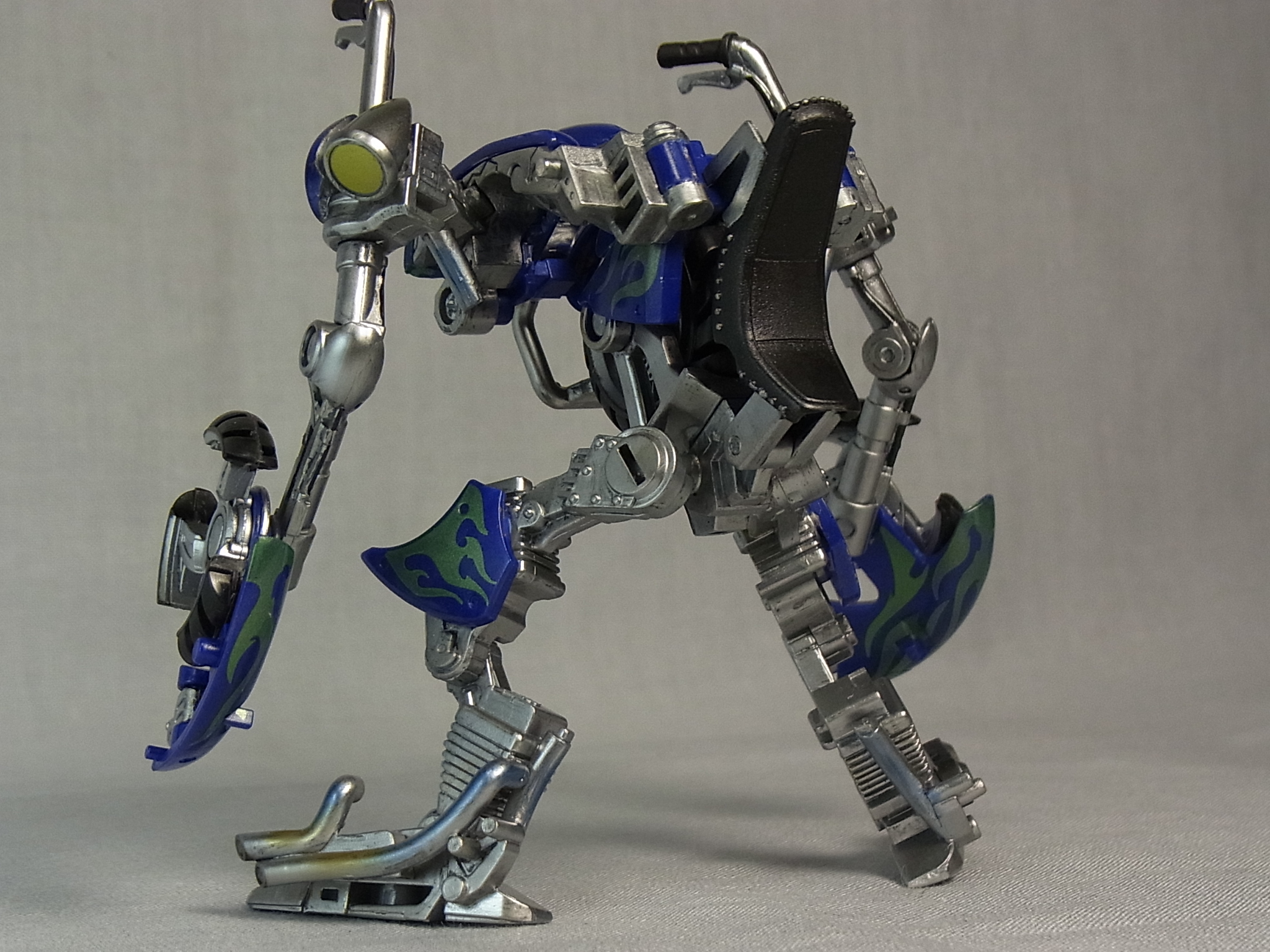 緑色のファイアーパターンが青メタの成型色の上から